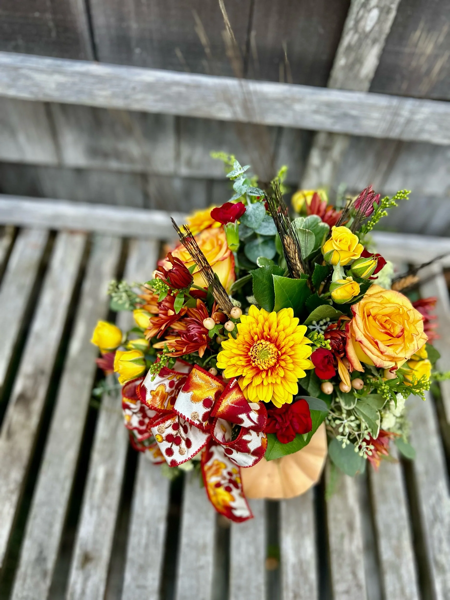 Feel free to use the special instructions box to share any specific notes for your order. Please keep in mind that while we may substitute flowers if needed, we’ll do our utmost to ensure your arrangement remains as beautiful as depicted. Thank you for choosing us to enhance your Thanksgiving celebration!