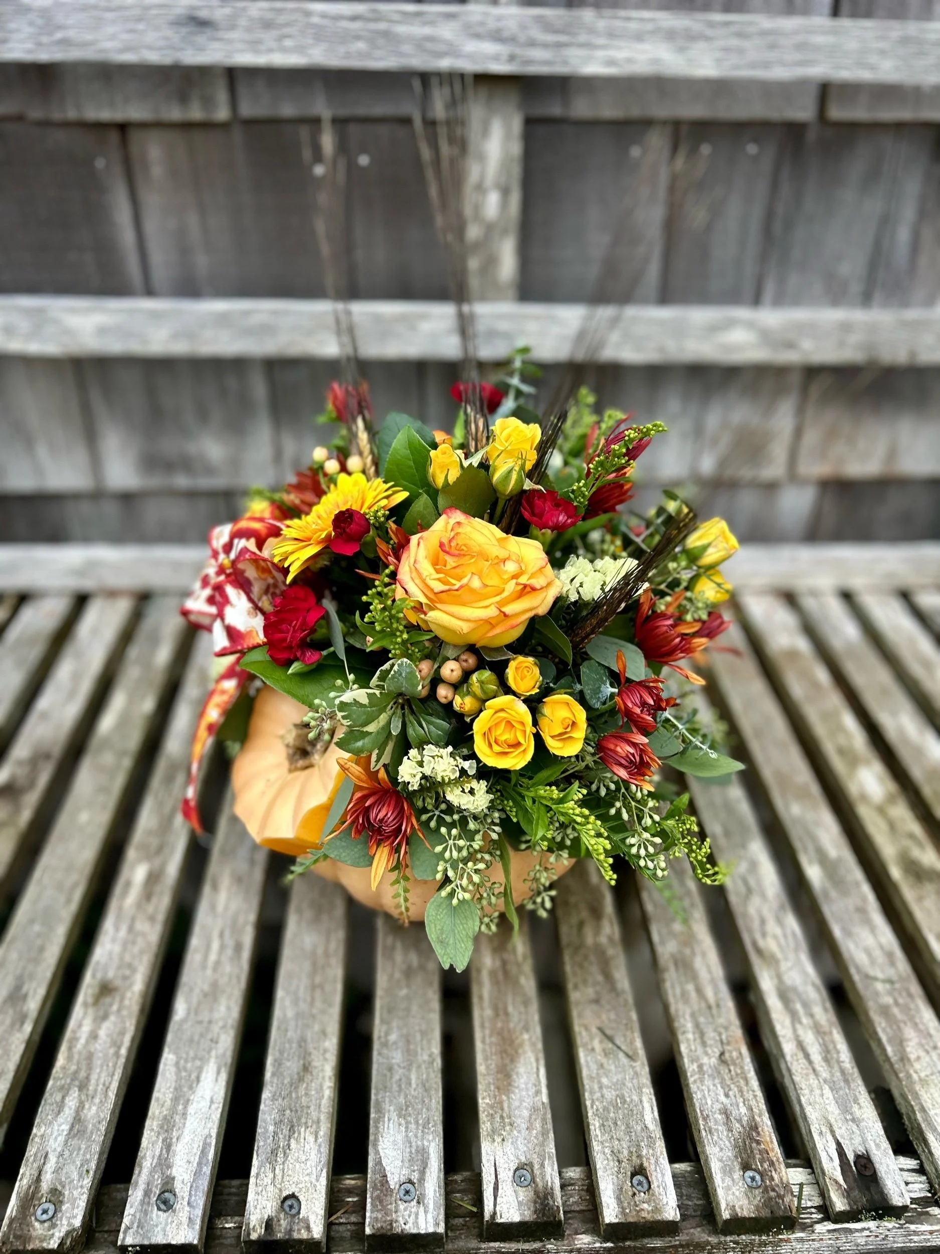 Immerse yourself in the enchanting beauty of our real pumpkin centerpieces, brimming with a delightful array of seasonal flowers. These stunning creations serve as the perfect centerpiece for your Thanksgiving table or a thoughtful gift for someone special. Each pumpkin is hand-carved and uniquely designed to capture the essence of autumn, showcasing a vibrant palette of traditional fall colors—all artfully arranged to create a truly captivating display.